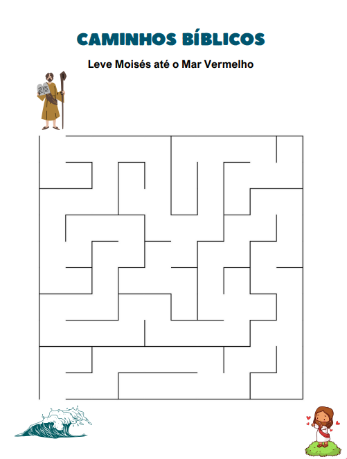 Guie personagens bíblicos por labirintos cheios de propósito! Uma atividade que desenvolve o raciocínio enquanto ensina sobre as jornadas da fé.
