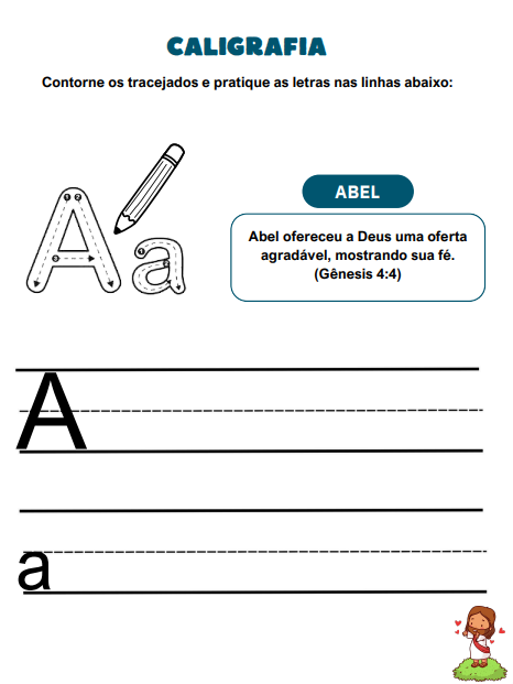 Pratique a escrita com versículos e palavras inspiradoras. Atividades de caligrafia que unem o desenvolvimento motor com a sabedoria da fé.