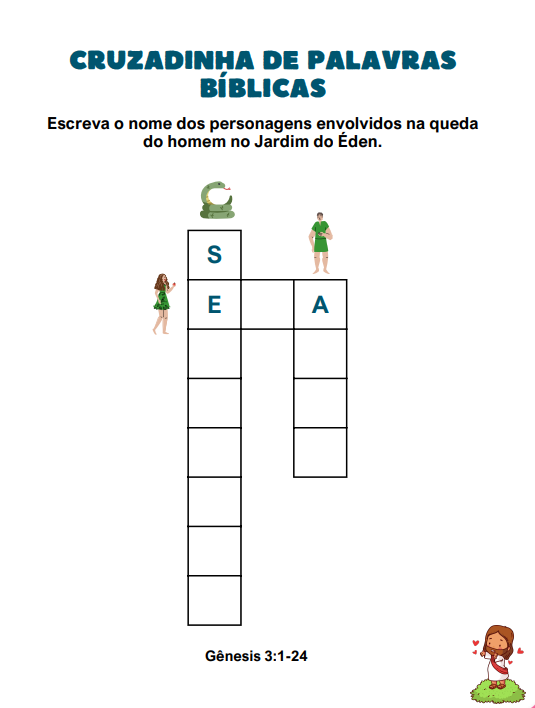 Teste os conhecimentos sobre a Bíblia de forma divertida! Cruzadinhas que desafiam e ensinam sobre personagens e eventos bíblicos.